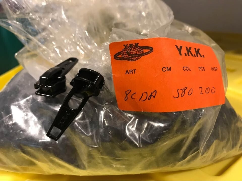la fermeture éclair Curseur autolok métallique couleur noir taille 5, $0,80 chaque curseur. J’en ai environ 150. Fermeture éclair noir taille 4. Vendu au mètre. $1,20 le mètre. Beaucoup de mètres disponibles.